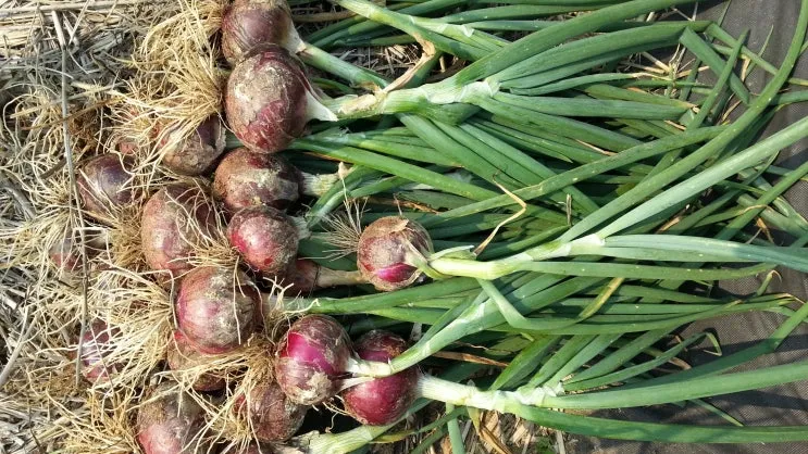 수확한 양파는 바로 먹지 말고 2~3일 햇볕에 말려서 겉껍질을 건조시켜야 합니다. 그래야 저장성이 좋아지거든요. 잘 말린 양파는 서늘하고 통풍이 잘 되는 곳에 보관하면 6개월 이상도 보관할 수 있어요.