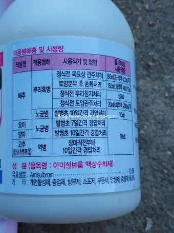 3순위로는 옥솔린산 수화제를 추천해요. 예방 효과가 뛰어나서 무름병이 자주 발생하는 농장에서는 필수적으로 사용해야 할 약제입니다.