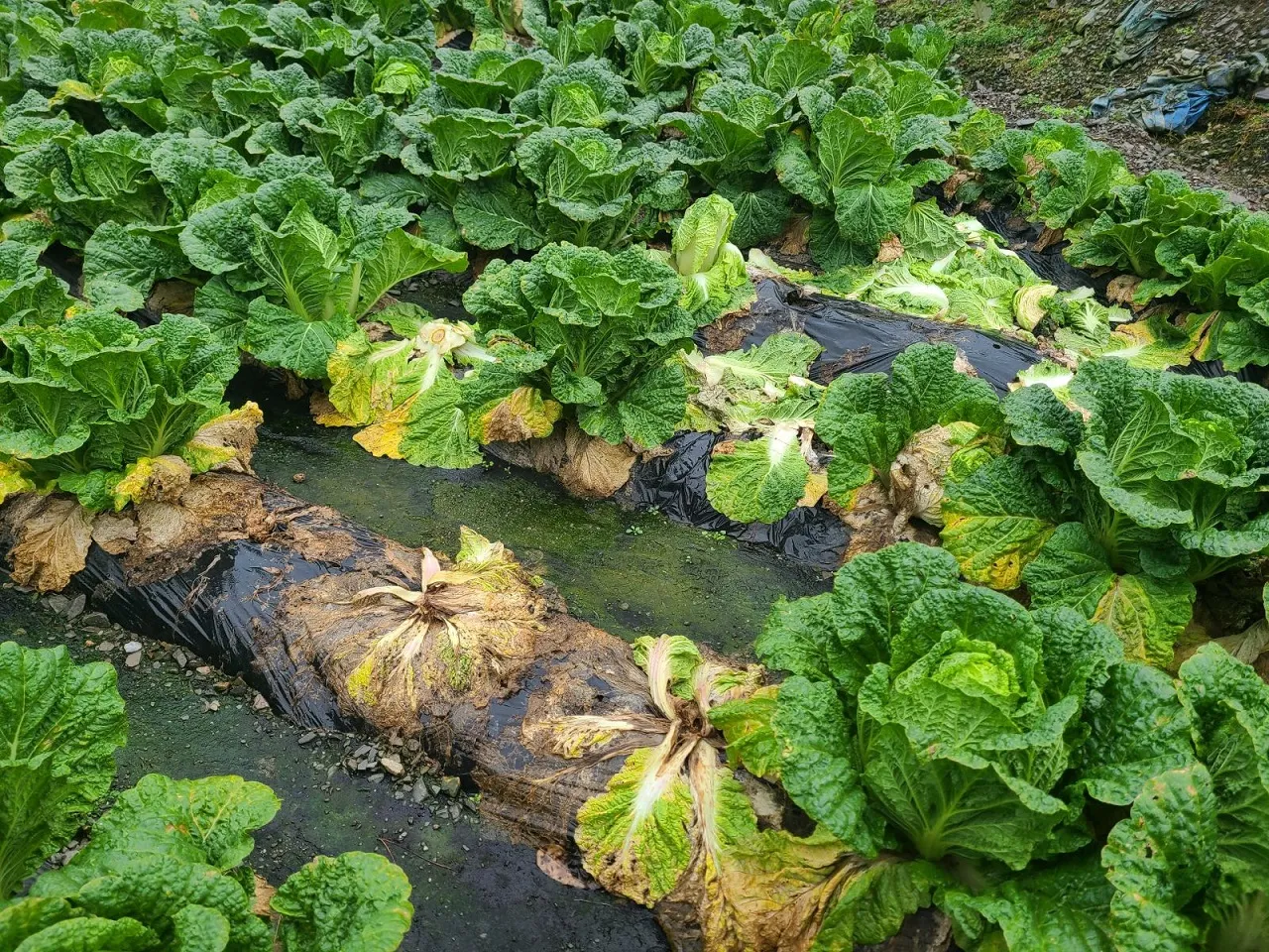 배수가 불량한 점토질 토양에서는 더욱 심각해집니다. 제가 관찰한 바로는 배수가 안 되는 밭에서 무름병 발생률이 80% 이상이었어요.
