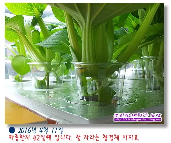 제가 베란다에서 수경재배로 키운 청경채는 토양재배보다 성장이 빨랐어요. 수경재배시에는 양분 공급 등이 토양재배보다 좋기 때문에 수확까지 걸리는 시간이 짧아집니다. 보통 30-40일이면 수확이 가능하더라고요.