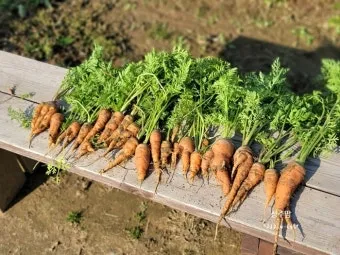 수확한 당근은 흙을 털어내고 서늘한 곳에 보관하면 오래 저장할 수 있어요. 특히 연지색 당근 같은 품종은 저장성이 좋아서 겨울 내내 먹을 수 있습니다.