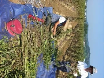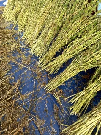 전통적인 참깨 수확 방법은 낫으로 줄기를 베어서 단으로 묶은 다음 건조시키는 방식이에요. 시간은 오래 걸리지만 씨앗 손실이 거의 없고 품질이 우수하다는 장점이 있어요.