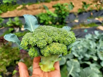 꽃봉오리가 단단하고 짙은 녹색일 때가 수확 적기입니다. 노란 꽃이 보이기 시작하면 이미 늦은 거예요. 아침 일찍 수확하는 것이 좋습니다.